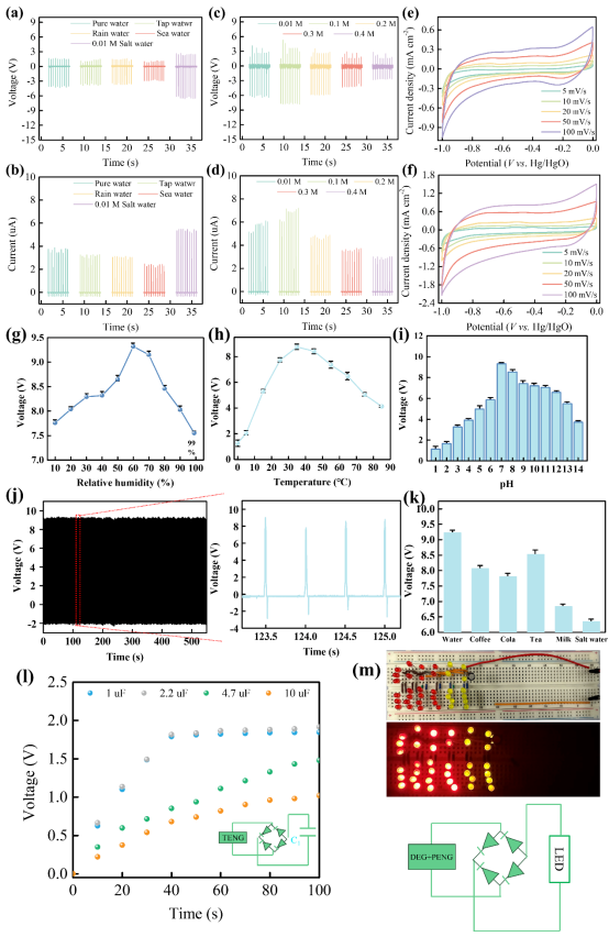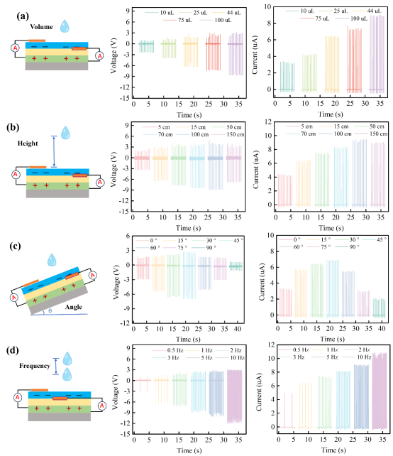 图5. 液滴-压电纳米发电机的应用分析