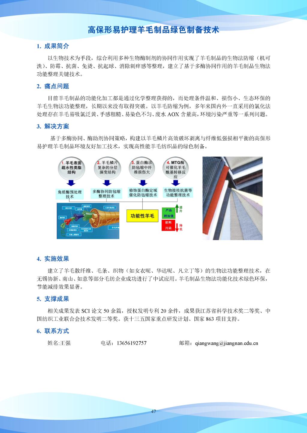 科研成果-高保形易护理羊毛制品绿色制备技术