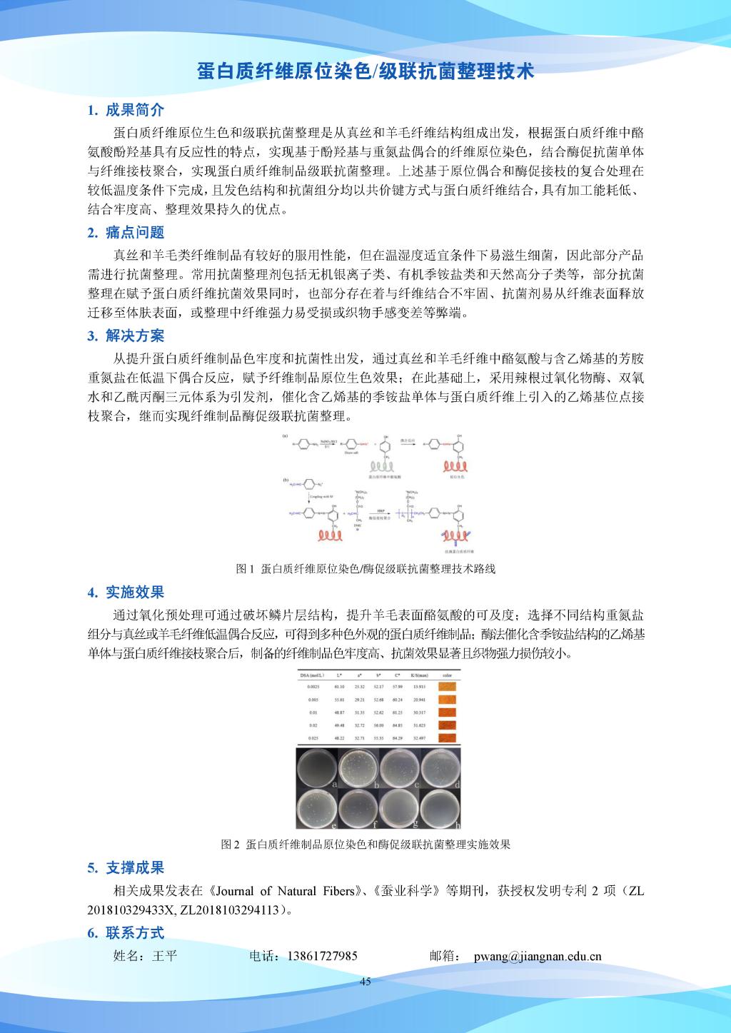 科研成果-蛋白质纤维原位染色/级联抗菌整理技术