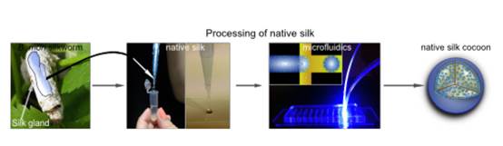 Natural proteins display critical structural and bioactive properties that have evolved in nature for millions of years. However, depending on the specific protein, there may be useful functions, such as mechanical toughness, while other critical features may be more limiting, such as cell compatibility or a broader range of mechanical properties. Silk proteins, as a building blocks for biomaterials construction, combine a unique properties of high mechanical performance and overall biocompatibility. This has led to their use in artificial vascularized tissues, nerve guides and functional soft/hard scaffold and recently silkworm silk has received Food and Drug Administration approval for expanded biomaterials device utility. Yet this wonder-material is not without its own challenges. These include the extreme shear sensitivity of silk fibroins and their propensity to aggregate upon extraction and thus it requires more biologically sensitive processing routes. Our research addresses these fundamental limitations by exploring a platform technology, based on microfluidics, that unlocks investigation of unstable fibroins, as well as other aggregation-prone proteins, processing and routes towards the use of material in contact with cells enabling us to explore possible applications in biomedicine.