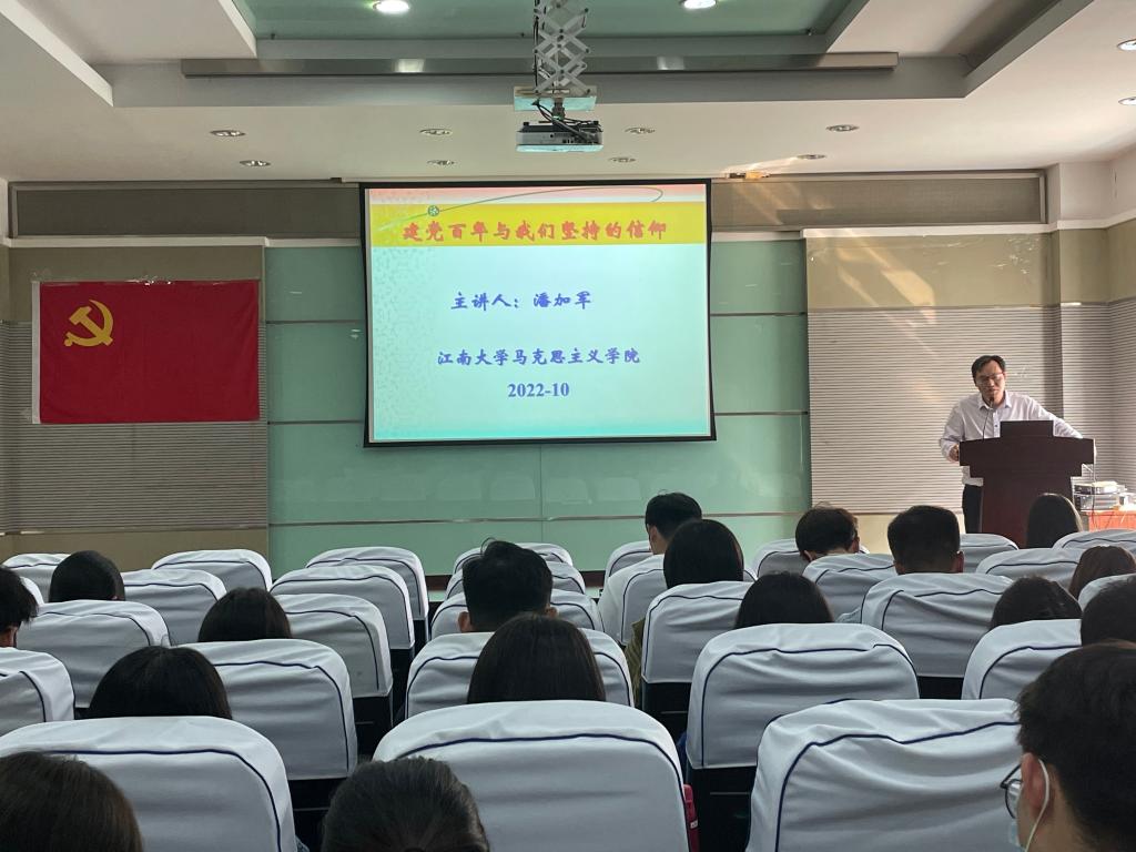 本次培训共开展两场线下讲座。第一场主题为《人民群众:中国共产党立党之基》,由马克思主义学院刘俊杰老师主讲。人民是中国共产党执政的最大底气,是我国的坚实根基,是强党兴国的根本所在。中国共产党来自于人民,为人民而生,因人民而兴,必须始终与人民心心相印、与人民同甘共苦、与人民团结奋斗。刘俊杰的讲解让学员对中国共产党的根本政治立场有了更加深刻的认识。