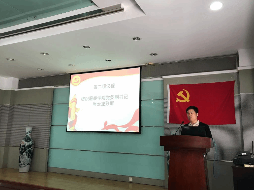 19日上午,开班仪式在庄严的《国际歌》中正式开始。环境与土木工程学院党委副书记金明媚、机械工程学院党委副书记方俊、纺织服装学院党委副书记周云龙出席开班仪式。开班仪式由纺服学院辅导员吴丹主持。