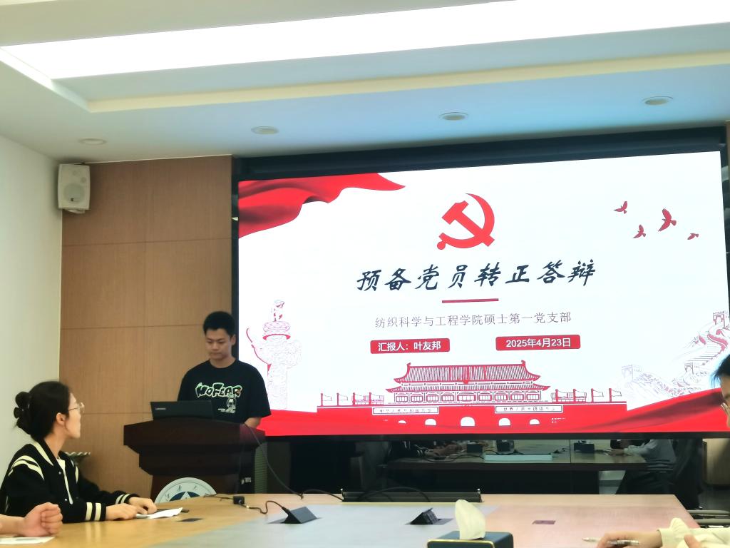 4月23日,bv伟德国际19462025年上半年预备党员转正答辩会于A306会议室举办,bv伟德国际1946特邀党建组织员沈波,组织员张志新,辅导员孙慧,纺织本科生党支部书记孙婷婷以及2025年上半年8名拟转正预备党员参加答辩会。