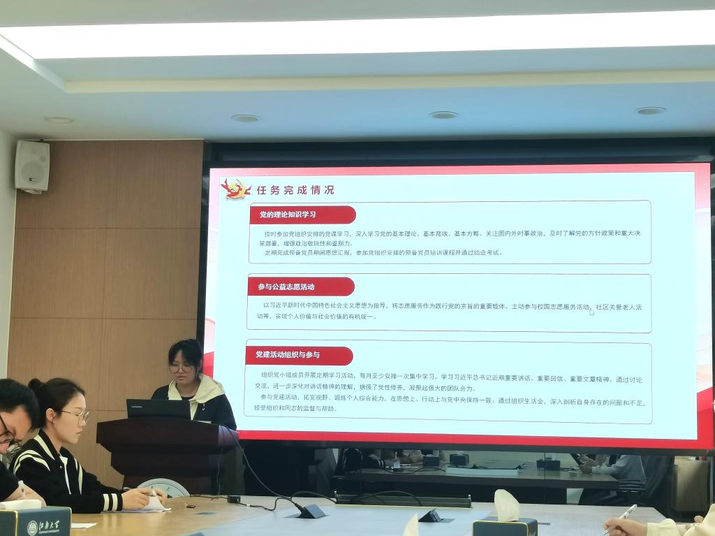 会上,8名预备党员依次进行答辩汇报。答辩分个人陈述、现场问答、现场评议三个环节。在个人陈述环节,预备党员就自己在预备期间思想工作情况、党组织交给的任务完成情况、自身还存在的问题以及整改情况等进行汇报。汇报结束后,答辩组成员就党的理论知识、党性修养、理想信念、模范作用、日常表现等进行现场提问。