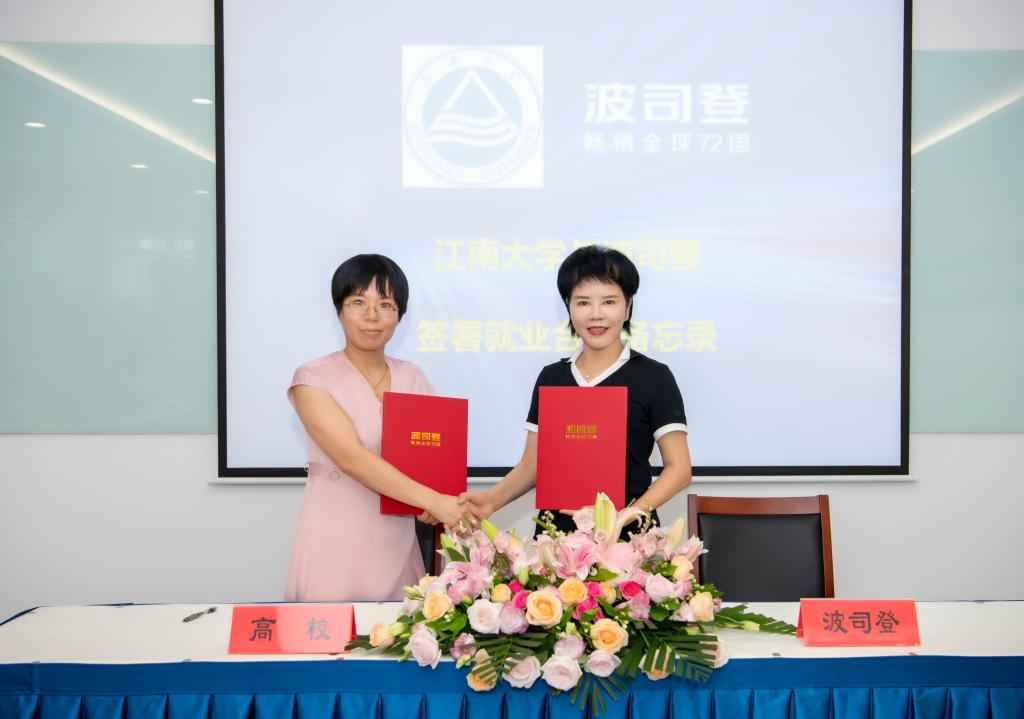 活动最后,波司登集团执行总裁梅冬女士发表讲话,她对高校师生来到波司登集团参加本次活动表示热烈欢迎和诚挚感谢。她表示波司登集团是一家特别重视科技创新和人才培养的企业,特别在大学生群体中,尊重高潜力人才的能力价值,全力打通了从毕业生到核心高管的发展通道。梅总真诚期待有更多优秀的年轻人加入波司登,找准职场坐标,实现个人价值,为民族品牌助力增益。波司登集团为与会高校颁发“大学生就业最佳战略合作伙伴”奖章,校企双方还共同签署就业合作备忘录,同时我校还为波司登集团颁发“大学生就业最佳战略合作伙伴”纪念牌。