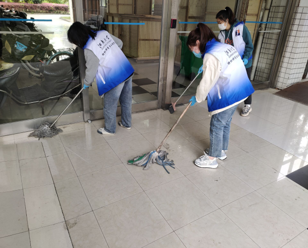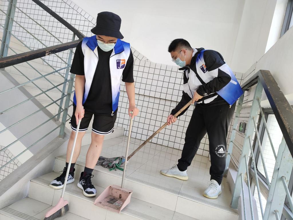 活动开始前,负责人组织志愿者在学院一楼大厅领取志愿者服装及清扫工具、进行签到并对本次活动的任务进行分配,安排志愿者们以小组为单位开展清扫活动。活动开展过程中,志愿者们严格遵守疫情防控要求,在做好个人防护的前提下,带上手套,拿起工具,合力清扫垃圾杂物,将学院及周边环境卫生清理得整洁有序。