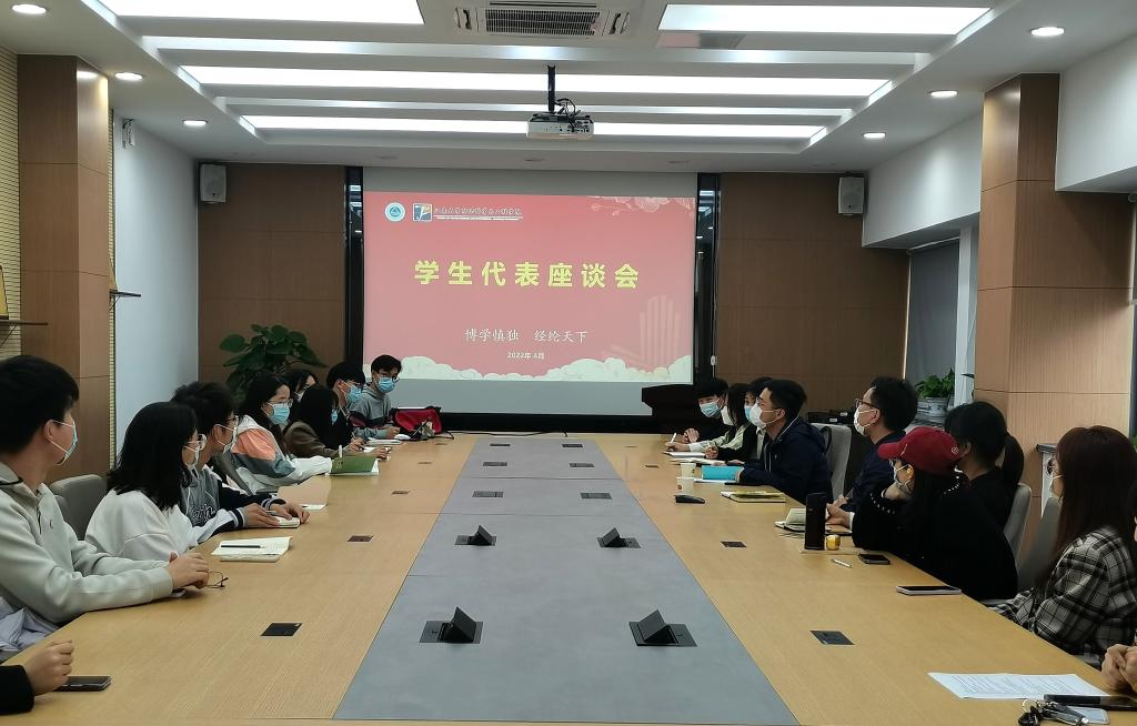 本次座谈会是在各年级集中汇总了与学生学习、生活、服务息息相关的意见建议基础上召开的。座谈会上,各年级学生代表们交流了目前阶段思想上、学习上和生活上的基本情况。同学们表示,目前学校后勤服务保障是充分的,能够满足在校学生吃、住、学、用、医等各方面需求;学院领导、辅导员、班主任等教师群体,深入班级和宿舍,加大了对同学们的关心关爱。同时大家也结合各自实际情况交流了一些存在的问题和困难,就课程安排、食堂就餐、图书馆预约、快递服务、超市购物、自习室、公寓设施、管理制度等与学生学习、生活相关的问题发表意见和建议。校团委及学院分团委老师对同学们关心的问题进行了回应和解答,表示将梳理意见和建议,与学校各职能部门沟通,进一步给同学们创造更加有序、安全、优良的学习和生活环境。会上,老师们还向同学们介绍了目前疫情防控形势,强调当下疫情的变化性、复杂性和防控的紧迫性,解读了学校疫情防控政策,告诫同学们要严格遵守防控要求,号召学生干部要充分发挥先锋模范作用,及时、完整、有效地将学校的疫情防控政策传达给身边的同学。