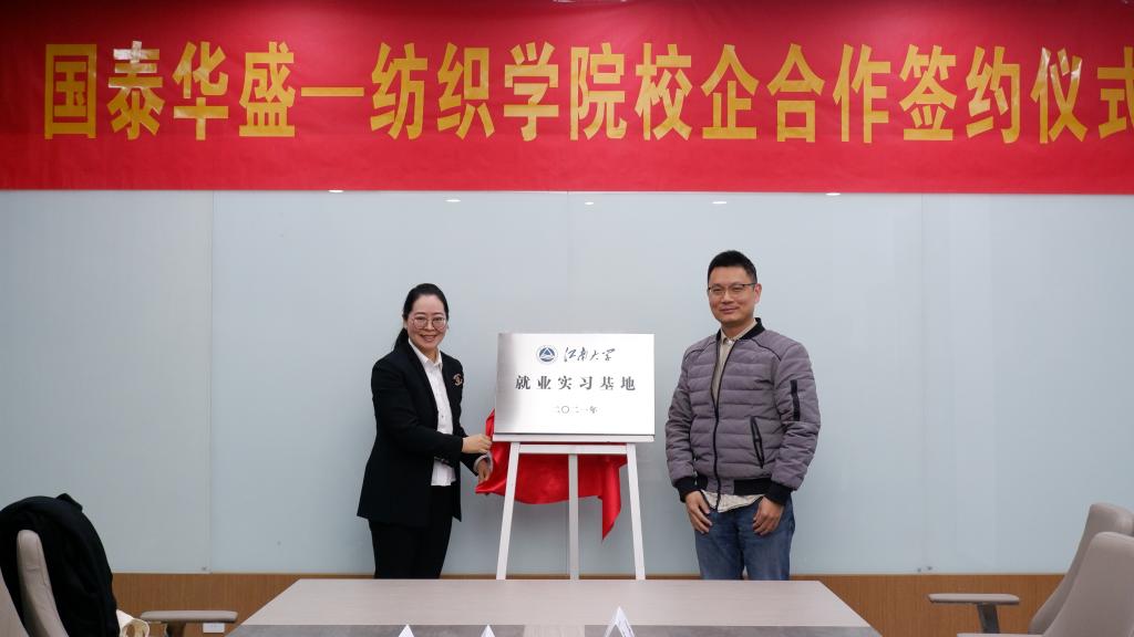 仪式伊始,党委副书记、副院长陈艳君介绍校企合作基本情况。江苏国泰华盛实业有限公司与纺织学院以“产教融合、校企合作、互利共赢”模式,依托新生入学教育讲座、游学参访、专题沙龙、设立就业实习基地等育人形式聚焦人才培养,实现专业素养再发展。依据学生科研创新及企业研发需求深化产学研合作,在前瞻性技术研究、产业关键共性技术攻关等专业前沿再突破,以期通过校企合作在资源共享、优势互补、协同育人等方面共同发挥作用,最终实现校企双赢、共同发展。