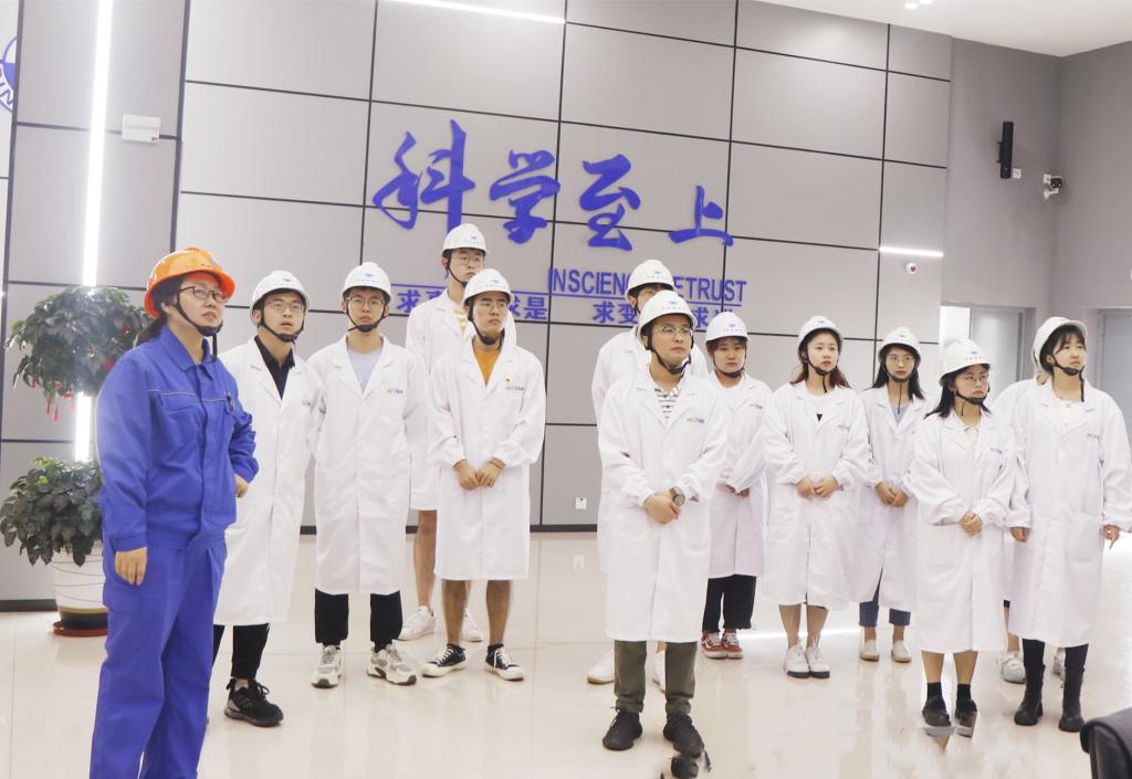 在中化高纤党员代表牛晓星的带领下,bv伟德国际1946师生一行首先参观了公司的科技展厅、DCS中控室和纺丝车间,对芳纶的生产和应用有了更直观和深入的了解。同学们纷纷表示,芳纶智造工厂的概念颠覆了他们对传统工厂的认知,对这样的工作环境和机遇充满向往:致力于自己热爱的纤维材料领域,为国家新材料的发展贡献力量。