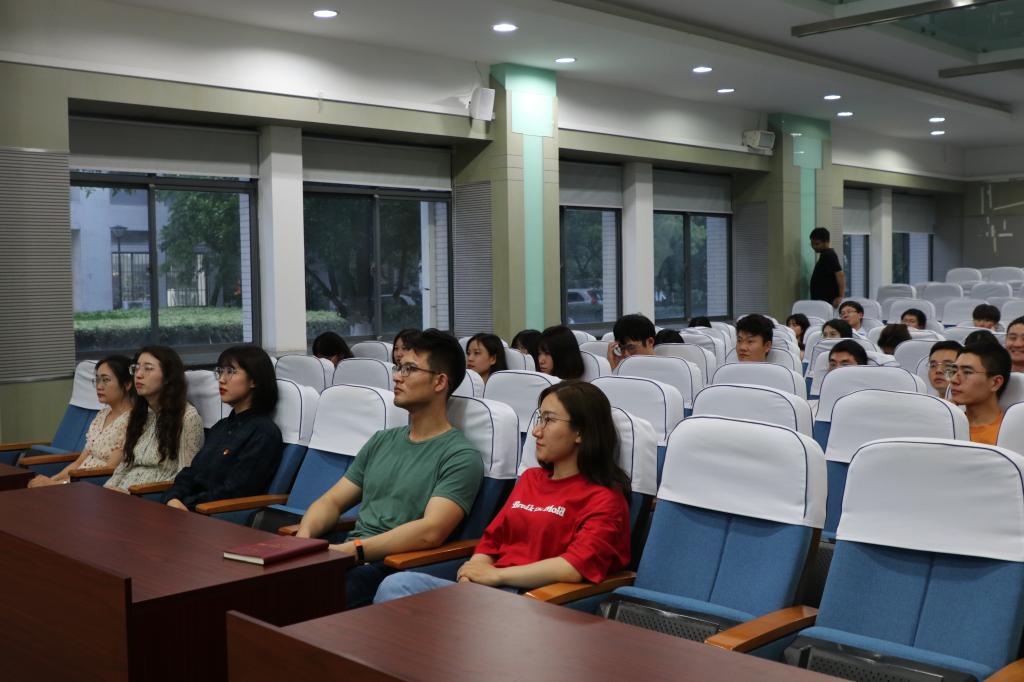 报告会的最后,由博士第二党支部党员代表带领大家走进新时代的篇章,她通过习近平总书记的真实经历,带同学们感悟“为人民谋幸福“的共产党人的初心,将中国共产党全心全意为人民服务的宗旨阐述地淋漓尽致,以此勉励同学们不忘初心、牢记使命,为实现中华民族伟大复兴的中国梦不懈努力。
