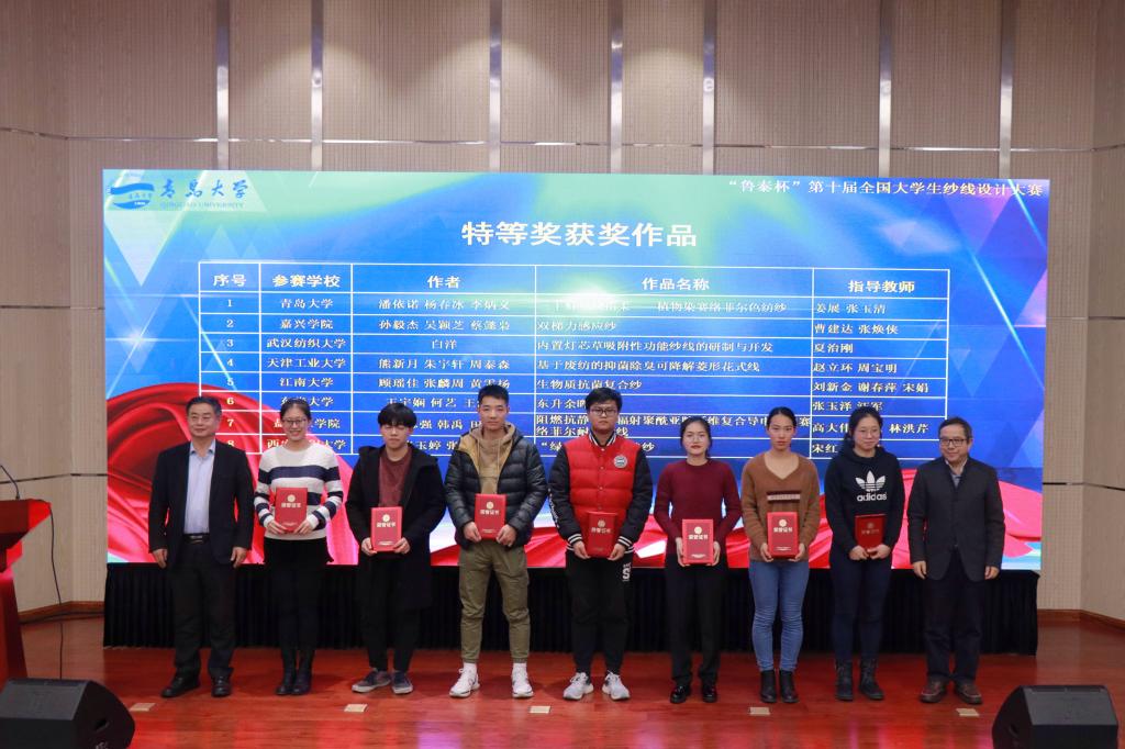 12月16日,第十届全国大学生纱线设计大赛颁奖典礼在青岛大学隆重举行。纺织服装学院师生在此次大赛中表现突出,斩获特等奖1项、三等奖1项、优秀指导教师奖1项。