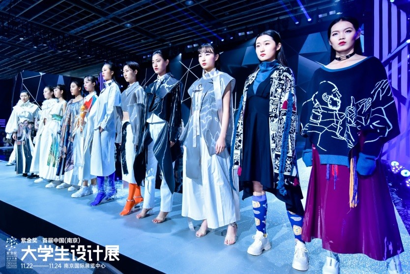 11月22日上午,以“创意,让青春更美好”为主题的紫金奖·首届中国(南京)大学生设计展在南京国际展览中心盛大开幕,来自全国百所知名高校的一万多件设计作品在这里惊艳亮相!伟德bv1946纺织服装学院表演专业师生应大会组委会的邀请参加了开幕式暨颁奖典礼优秀服装设计作品展示,成为现场最精彩靓丽的风景。