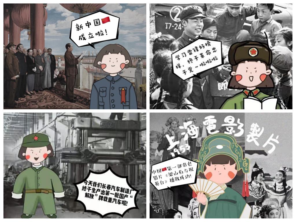 时值“阿中哥”——中华人民共和国成立70周年,伟德bv1946纺织服装学院本科生低年级党支部党员作为“阿中哥”的“铁粉”,拿起画笔,把对“阿中哥”的爱凝成笔下一位追寻强国梦的女孩——小纺。她穿上那个时代或是流行服装,或是工作制服,与珍贵历史合影,以回溯“阿中哥”风雨兼程、砥砺前行的伟大历程,全面呈现“阿中哥”70年发展成就。