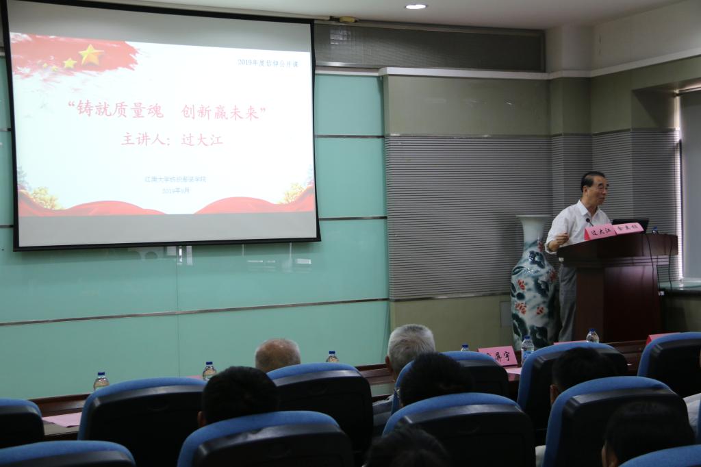 2019925日下午,在伟德bv1946纺织服装学院A103报告厅中举办了 “与信仰对话——铸就质量魂,创新赢未来”讲座。本次讲座特邀无锡市老科技工作者协会质量技术监督专业委员会、纺织服装学院老校友过大江老师主讲。