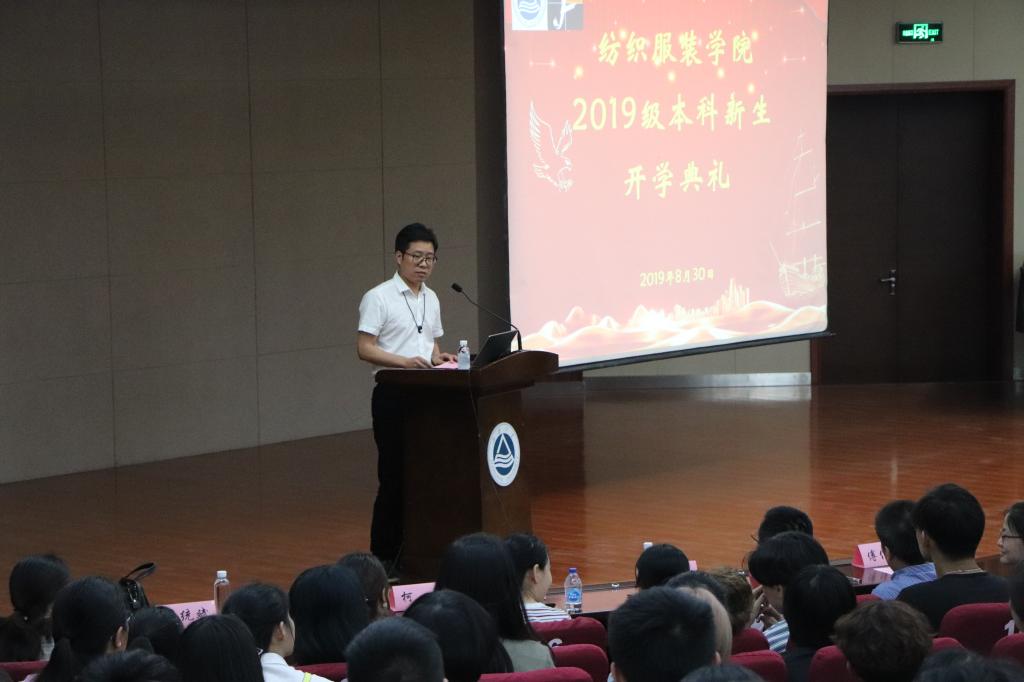 同时,院党委副书记周云龙宣读了2019新生班主任、副班主任聘任,蔡以兵教授、乔辉教授、马丕波教授等专业老师任新生班主任,高年级优秀学生任副班主任。各系主任分别代表各系专业教师寄语新生,与同学们谈人生、树理想、指方向。纺织服装学院现任学生会主席、服艺1702班杨文怡代表在校生为2019本科新生送上祝福,新生代表纺织1905班张嘉雯同学代表新生发言。