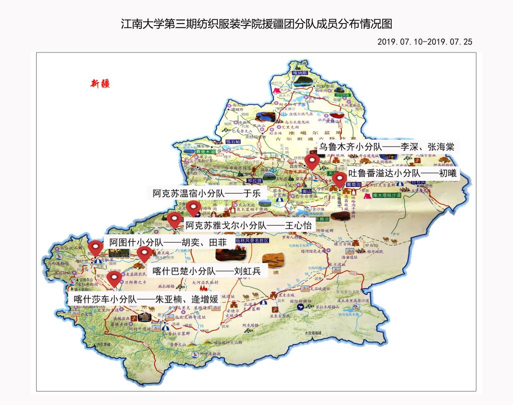 伟德bv1946第三期纺织服装学院援疆团分队成员分布情况图
