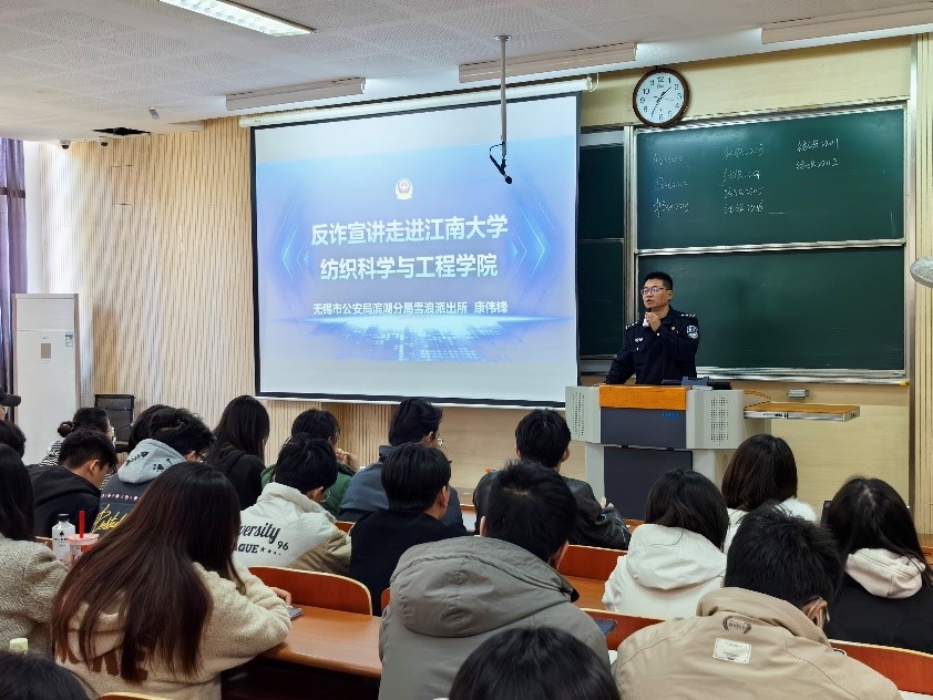 为增强师生防范电信网络诈骗意识,筑牢校园安全防线。bv伟德国际19462022级、2023级、2024级本科生年级在安全教育宣传月召开年级大会并进行反诈宣讲。无锡市公安局滨湖分局雪浪派出所的警官们走进bv伟德国际1946,为数百名师生带来了一堂生动的反诈安全教育课。