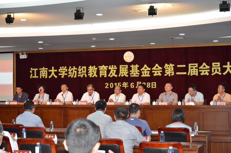 6月28日下午,2015伟德bv1946纺织教育发展基金会第二届会员大会在学校图书馆五楼会议室隆重召开,会议由基金会副理事长香港肇丰投资有限公司董事长高春和主持。副校长高卫东理事长、校党委副书记符惠明副理事长、江苏汇鸿股份有限公司董事长蒋金华副理事长、无锡市第一棉纺织厂厂长周晔珺副理事长、无锡市翔泰毛纺有限公司董事长周文涛副理事长以及一百多名会员及获奖师生出席了本届大会。