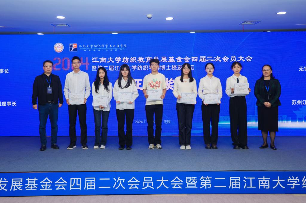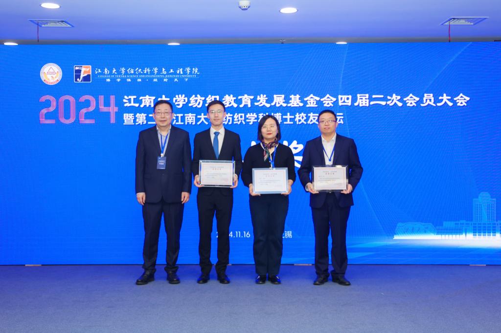 奖教奖学颁奖环节,3位教师荣获“育人奖”,36位学生荣获“新锐奖”,9支队伍荣获“竞赛奖”,15位校友自毕业后连续三年服务于纺织服装行业,荣获“征程奖”。轻化工程系主任殷允杰、原纺织1805班陈宣妤分别作为获奖师生代表发言。