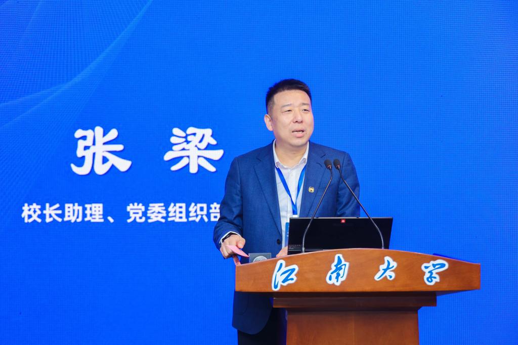 张梁在致辞中代表学校向莅临大会的各位会员和校友们表示热烈欢迎和诚挚感谢。他提到,近年来学校发展稳中有进,特别是在“2024年软科世界一流学科排名”中,食品科学与工程、纺织科学与工程、生物工程学科分别排名世界第一、第二、第三。广大校友长期以来对母校的关心与支持极大助推了学校及学院在教育教学质量、科技成果转化、社会服务等方面取得丰硕成果。他表示,各位校友饮水思源、回报母校的情怀,捐资助学、心系教育的义举,为行业培育了众多人才,赋能学校高质量发展,希望未来能继续与各位携手,持续推进科技创新与人才成长。