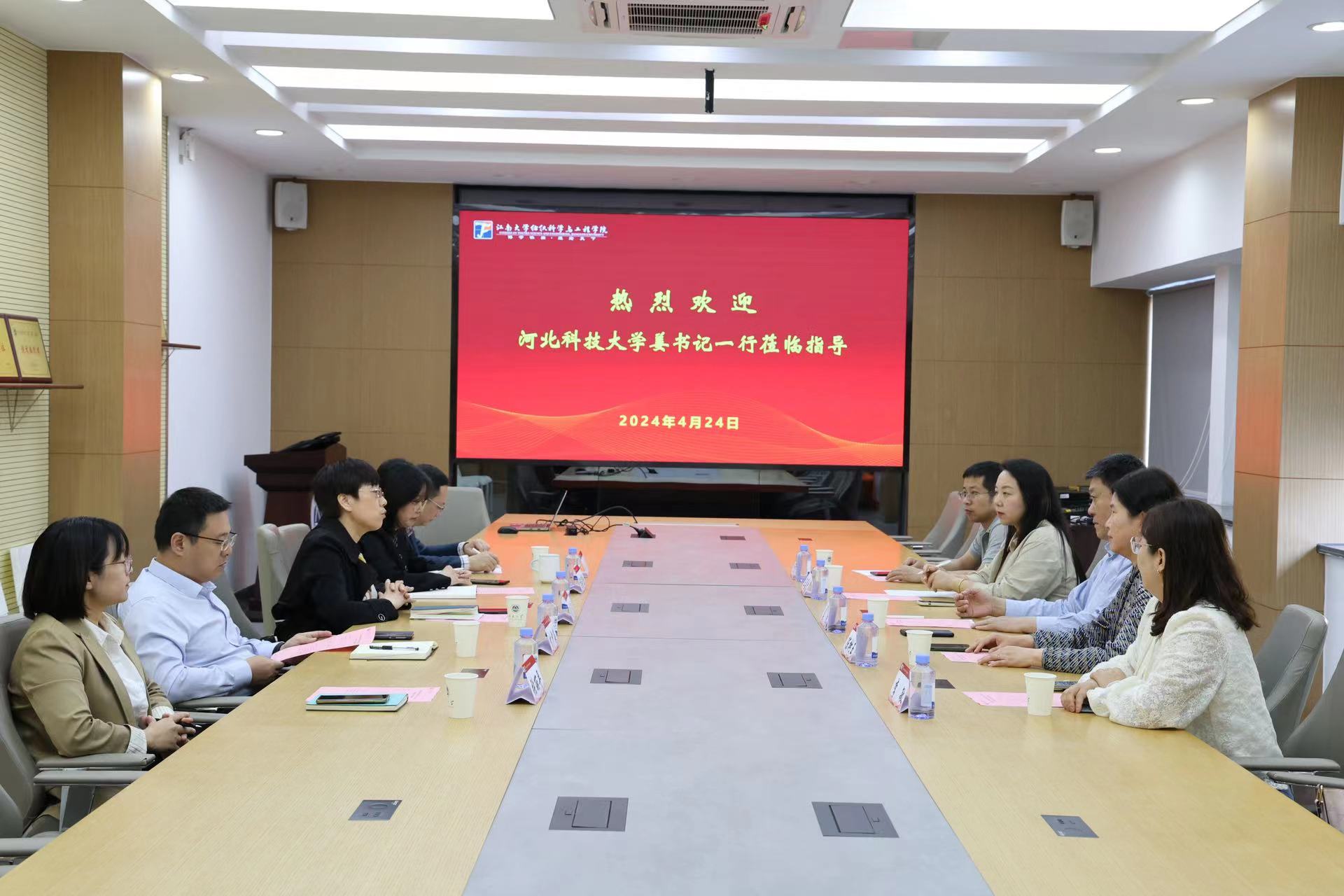 4月24日,河北科技大学党委常委、纪委书记、监察专员姜昆,河北科技大学纺织服装学院党委书记陈树玉等一行来bv伟德国际1946交流座谈。学院党委书记张菁燕、院长付少海热情接待。
