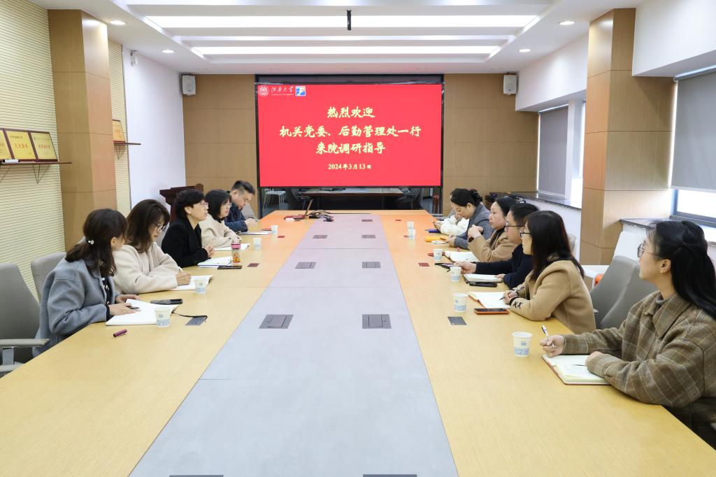 3月13日上午,机关党委书记兼党委组织部副部长张菁,后勤管理处处长吴光明,机关党委委员、统战部副部长王冰,党委办公室副主任代卉一行来到bv伟德国际1946,开展机关作风、后勤管理服务等专项调研。学院党委书记张菁燕,党委副书记、副院长杨莉勤,以及办公室主任、分工会主席、专职组织员参加座谈交流。