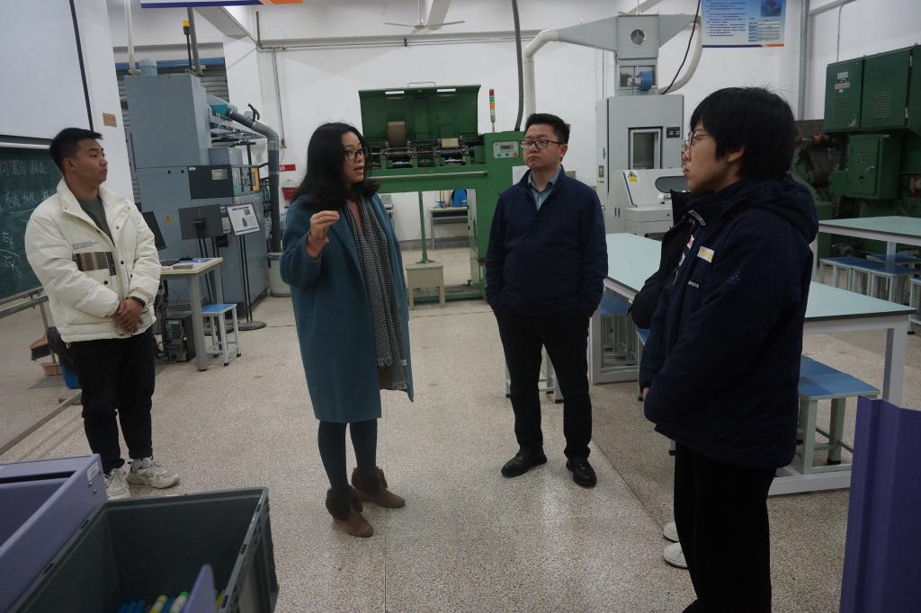 在会议开始前,泰和新材集团战略规划研究院江明院长一行还参观了bv伟德国际1946纺纱和针织实验室。