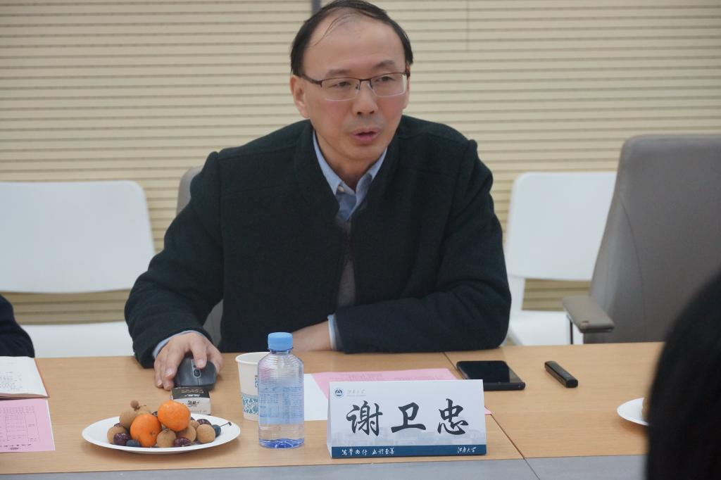 谢卫忠介绍了学校的历史沿革、发展格局、学科建设和科研概况等情况。表示学校始终瞄准产业前沿与行业急需,支持培育重大横向项目。