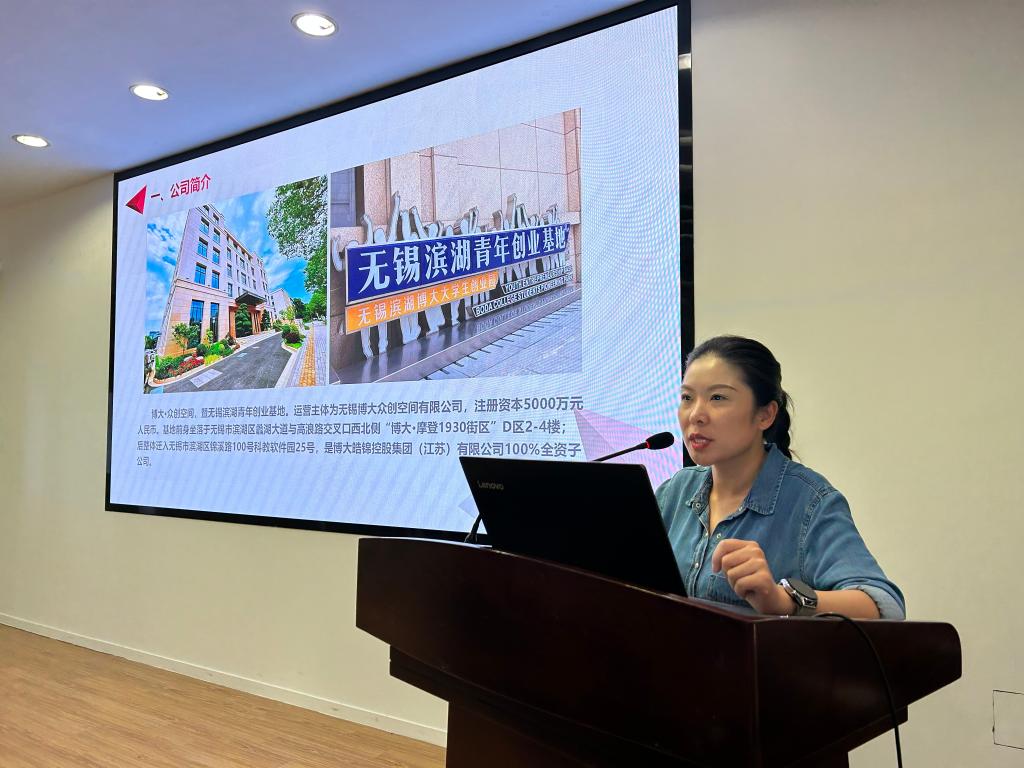 会上,吴梓萌介绍创业扶持政策,他以科技感满满的创业项目为例,分享滨湖区创业优惠政策——“0”成本创业,从扶持对象、扶持内容、创业优惠政策等方面进行详细解读,通过创业场所减免租金和享受创业扶持政策,最终实现“0”成本创业。同时,他还介绍了滨湖区的创业场所和创业孵化基地,以及创业大赛等各项资助渠道。他鼓励在校大学生勇于尝试创业。左艳具体介绍了博大·众创空间相关情况,公司位于伟德bv1946南门科教软件园内,温馨的办公环境让创业大学生“孵化”自己的梦想;她还介绍了公司在政策落实、创业指导、滚动孵化、经验交流等方面的举措成效。