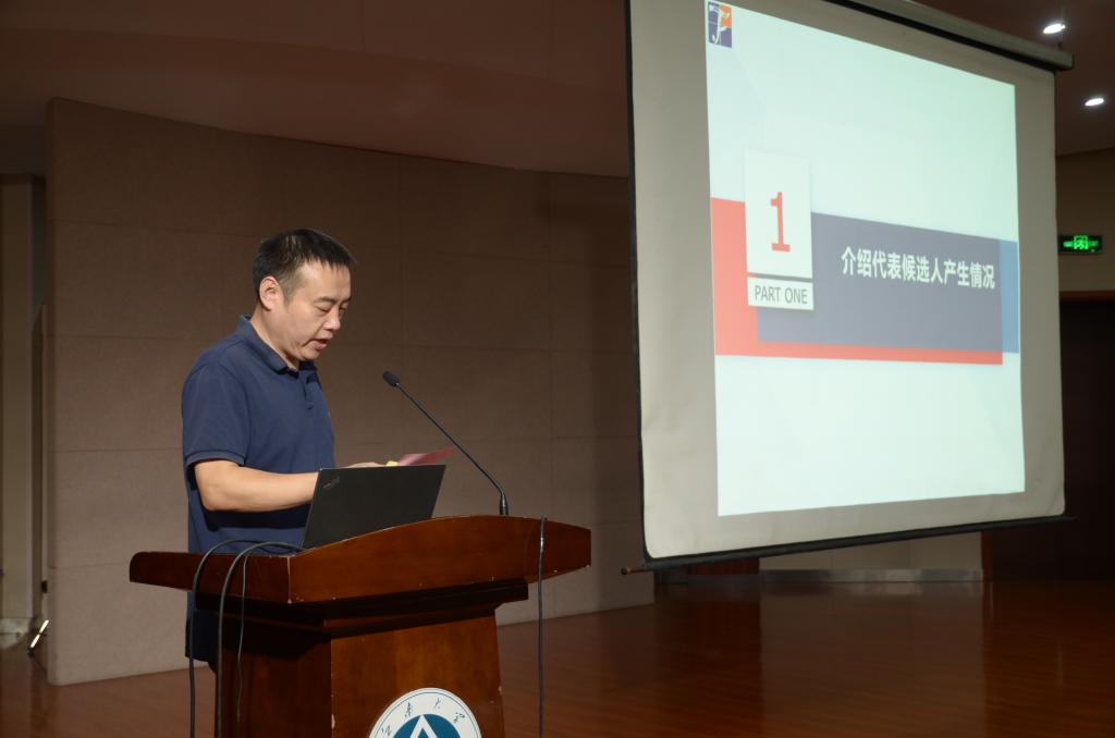 学院分工会主席卢雨正介绍代表候选人产生情况