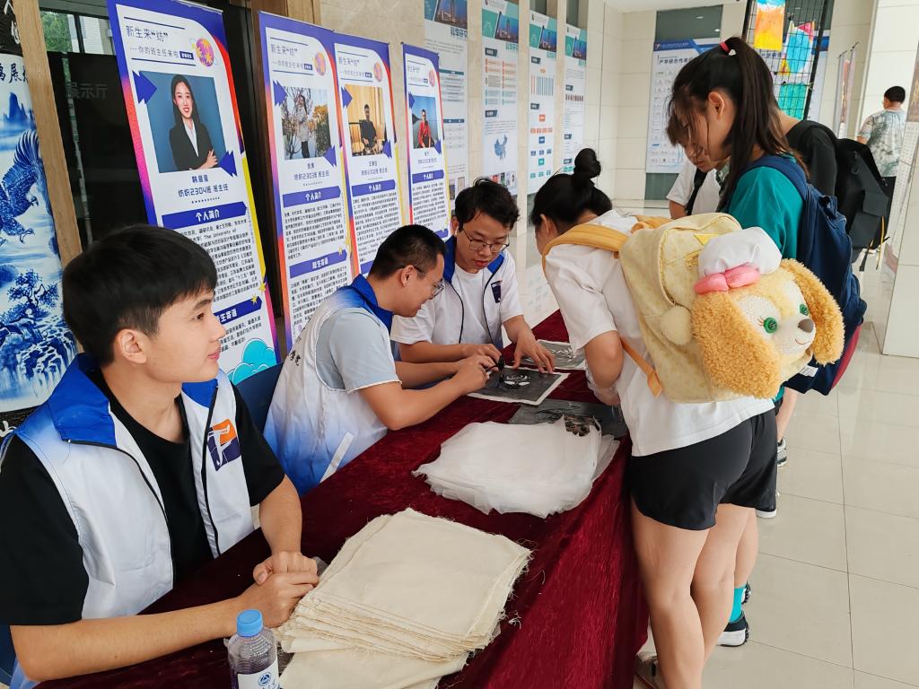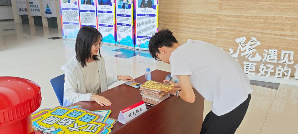 问天探海,服务民生,智感未来,万物可织。学院在报到现场设置了丝网印花体验区,一张张棉麻布在萌新的手中变成了一幅幅漂亮的图案,大家纷纷表示要将自己亲手做的作品珍藏起来,因为这也是印在心里成为纺织人的模样。此外,学院还为新生设立了时光邮局,新生带着对理想的思索,郑重地写下承载着梦想和希望的信件,“邮寄”给四年后的自己,感受大学四年的成长和变化,激励自己奋发图强,为建设纺织强国贡献青春智慧。