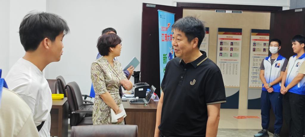 倪松涛与新生亲切交谈