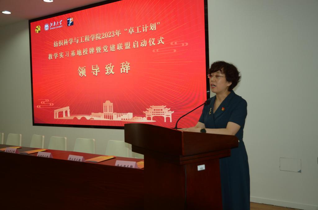 bv伟德国际1946作为全国首批“卓工计划”实施单位,始终把工程能力作为人才培养体系的重要环节,“全员覆盖、全面重构、全程协同”的纺织工程“卓越计划”人才培养的研究与实践荣获国家教学成果二等奖。学院将以此次党建联盟和教学实习基地授牌为契机,进一步统筹组织、人才、科技优势,推动组织链、人才链、创新链、服务链深度融合,切实把党的政治优势、组织优势转化为人才培养胜势、企业竞争优势,努力绘就高质量党建的“同心圆”,扩大高质量发展的“朋友圈”,全面构筑校企合作新局面。