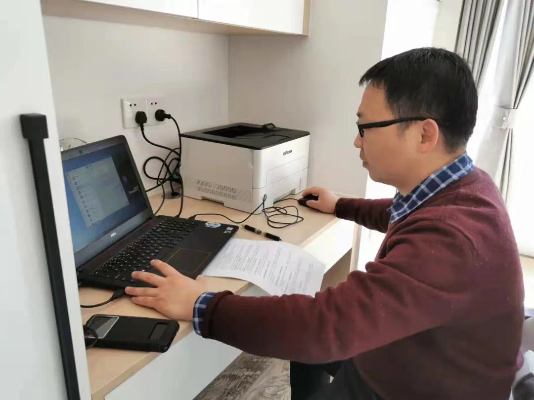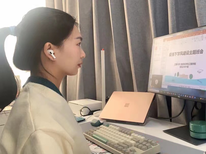 原党委委员、专职组织员、行政实验党支部书记李慧晓杉与联系宿舍同学相聚“云端”