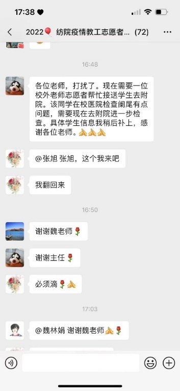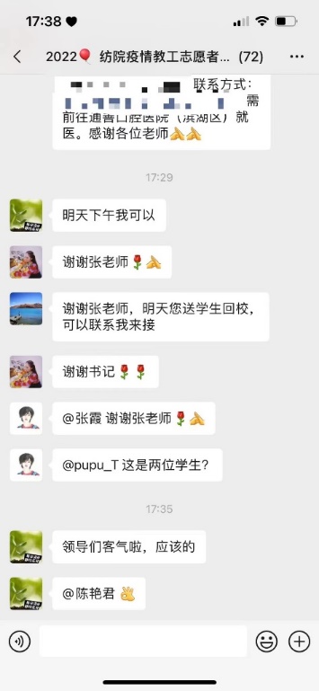学院党委第一时间号召全体师生党员在疫情防控工作中践行初心使命,主动担当作为、发挥作用,坚决防止疫情向学校蔓延,切实保障师生健康安全,学院面向党员教职工招募贮备教师志愿者,党员教师迅速在“空中”集结,成立了72人的教工党员志愿者服务队,负责学生进出校接送任务,师生每天都在被这些“云”司机感动着。