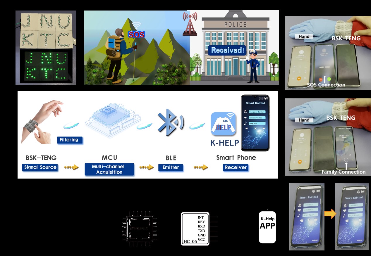 图2 BSK-TENG作为自供能传感器用于无线信号传输的个人户外救援系统应用
