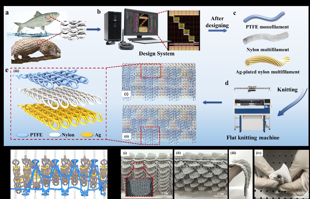 该工作近日以“Industrial production of bionic scales knitting fabric-based triboelectric nanogenerator for outdoor rescue and human protection”为论文标题在线发表在《Nano Energy》期刊(IF=17.881)。针织中心博士研究生牛丽为论文第一作者;伟德bv1946针织中心蒋高明教授、马丕波教授与陈超余副研究员为论文共同通讯作者。该研究得到了国家自然科学基金(11972172)、省部共建纺织新材料与先进加工技术国家重点实验室开放课题基金(FZ2021013)资助。
