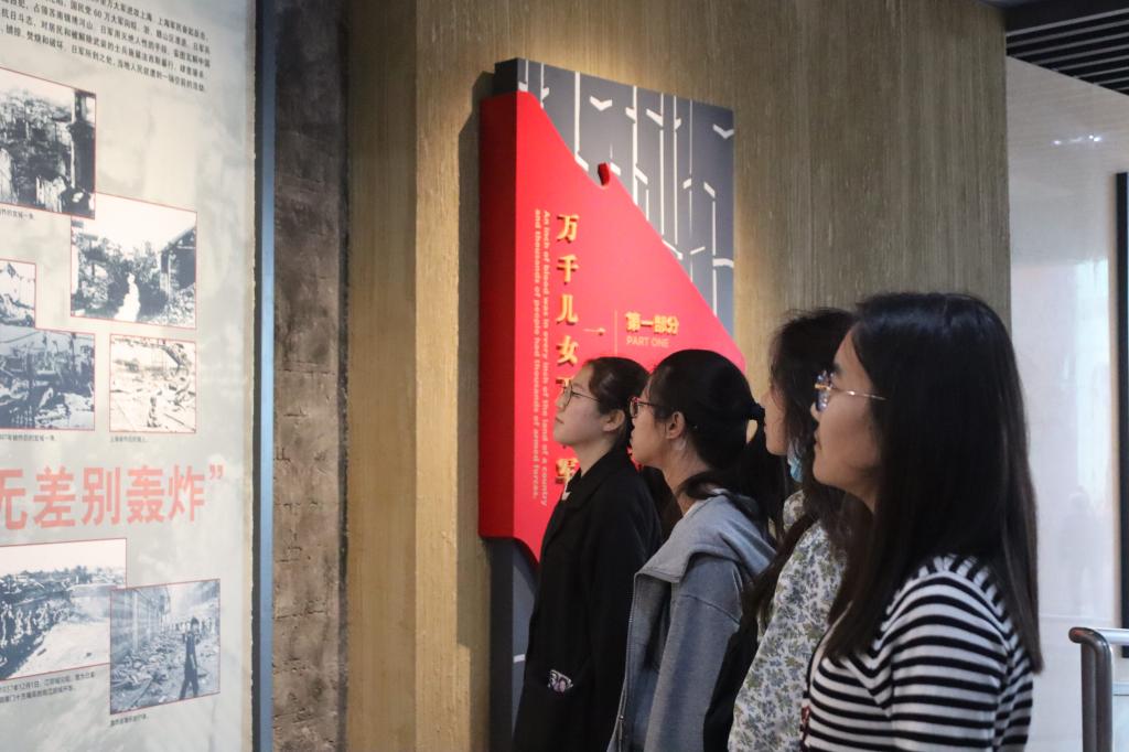 纪念馆的长廊上记录了侵华日军在这片土地上犯下的罪行。在第四展区,“桥涯和兴饭店”群像雕塑吸引了同学们的注意。老党员秦亚建向同学们表示,桥涯和兴饭店是当时新四军江南指挥部在太华设立的一处秘密联络站。当时条件十分艰苦,但该秘密联络站的同志们依然出色地完成了各项任务。距离“桥涯和兴饭店”群像雕塑不远处,一门日制92式步兵炮的模型十分引人注目。“这是在杭村战斗中被缴获的,这门92式步兵炮的原件现陈列在中国人民革命军事博物馆内。”老党员袁伯兴介绍道。杭村战斗是在太华及附近区域发生的一场较为著名的战斗。1944年3月,日伪军调集4000余兵力,对太华及周边区域进行扫荡。为了应对敌人的威胁,新四军十六旅依靠群众采取灵活机动的战略战术与敌人周旋。3月29日,十六旅旅长王必成率部对400余名正在返回驻地的敌人发动突然袭击,歼灭日伪军近200人,缴获步枪、掷弹筒等军用物资,尤其是缴获了一门日军视为珍宝的92式步兵炮,极大地打击了敌人的嚣张气焰,鼓舞了抗日军民的士气。参观活动中,同学们感触颇深,纺织2003班张子千同学表示:我们参观纪念馆,凭吊革命先烈,为的就是继承先烈的遗志,发扬光荣的革命传统,指引我们把当前的学习和工作做得更好。