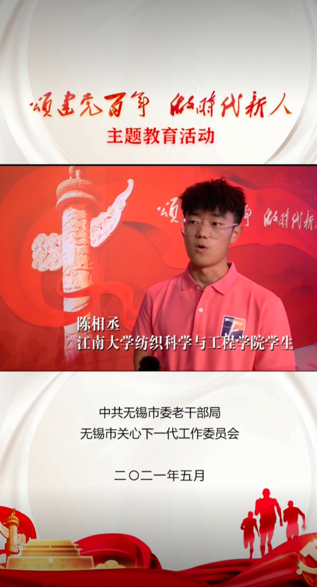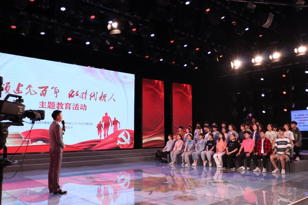 5月12日下午,由中共无锡市委老干部局、无锡市关心下一代工作委员会联合举办的“颂建党100周年做时代新人”大型党史学习教育主题访谈活动在无锡教育电视台进行录制。bv伟德国际1946纺织2003团支部、轻化2001团支部40余名团员青年受邀参加节目录制,开展了一次特殊的党史学习教育主题团日活动。
