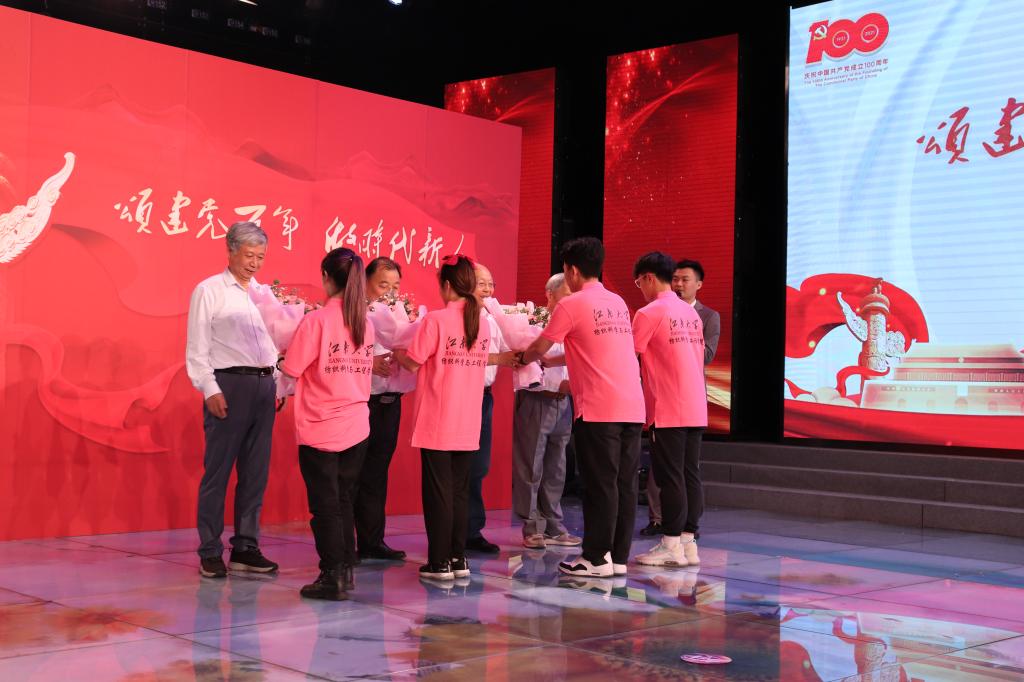 一百年雄关漫道、九万里风鹏正举。赓续精神血脉,筑牢理想信念,传承红色基因,争做时代新人。本次访谈由四位无锡市关工委报告团成员担任主讲嘉宾,他们分别是:原无锡庆丰集团漂染公司纪委书记蒋川海,原总参56研究所政委兼党委书记张发海,原无锡市侨谊实验中学书记、校长钱昭平,原伟德bv1946党委副书记、纪委书记娄国栋。4位嘉宾以建国后的四个时期划分来讲述党史故事:新民主主义革命时期,开天辟地,完成救国大业;社会主义革命和建设时期,改天换地,完成兴国大业;改革开放和社会主义现代化建设新时期,翻天覆地,推进富国大业;中国特色社会主义新时代,惊天动地,实现强国大业。老同志们以恳切热烈的语调娓娓道来新中国艰辛而辉煌的发展之路,他们丰富的人生阅历和至高的思想觉悟正是值得青年学子学习的最佳榜样。伴随着明亮的灯光、激昂的配乐、缤纷的影像等多重舞台效果,教育活动灵活生动。四位主讲嘉宾为每个篇章分别推荐了主题曲目:《没有共产党就没有新中国》、《我们走在大路上》、《春天的故事》、《少年》,正是党带领人民克服万难走在改革开放的道路上,中华大地才开启春天故事的序章,万千少年人才能在如今的幸福生活里自由成长。