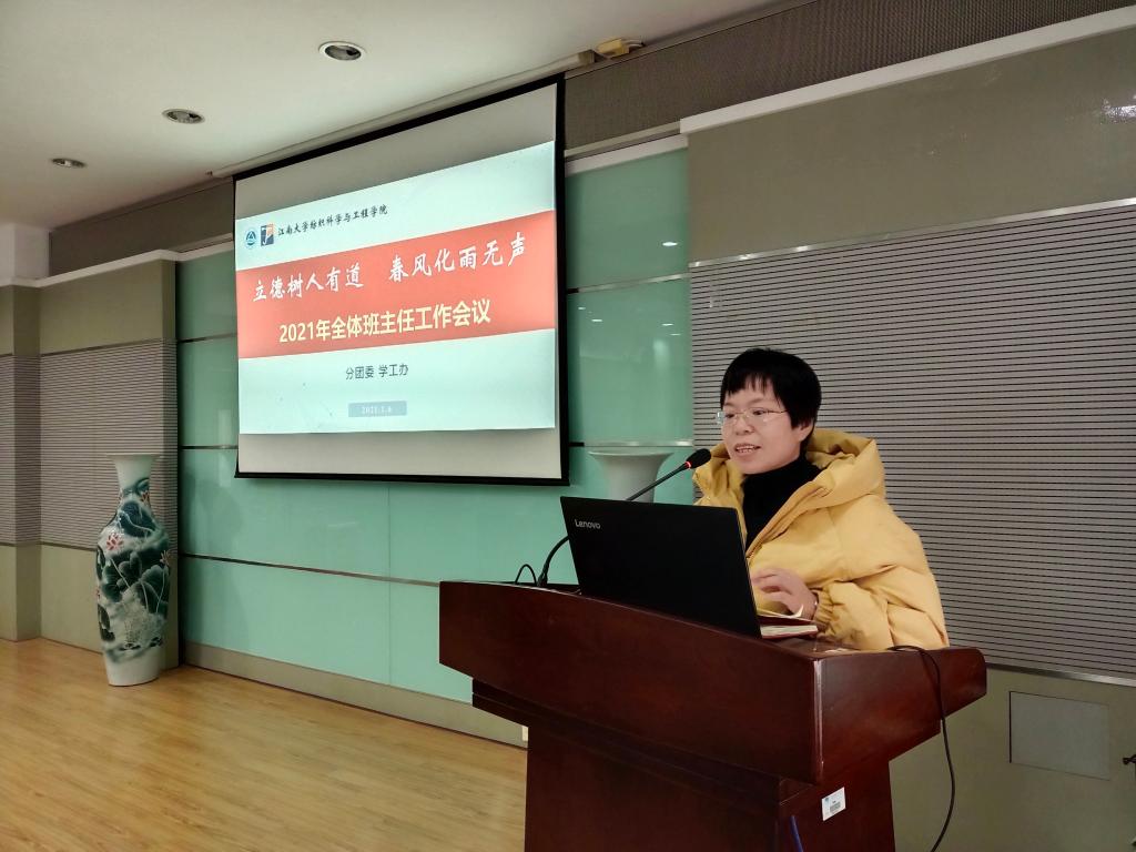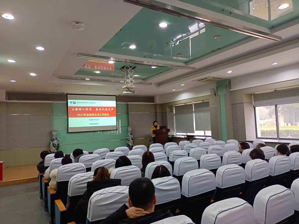 1月6日下午,bv伟德国际1946在学院A103会议室召开学期末班主任工作会议,会议由院党委副书记陈艳君主持,学院全体班主任老师、辅导员老师参加会议。