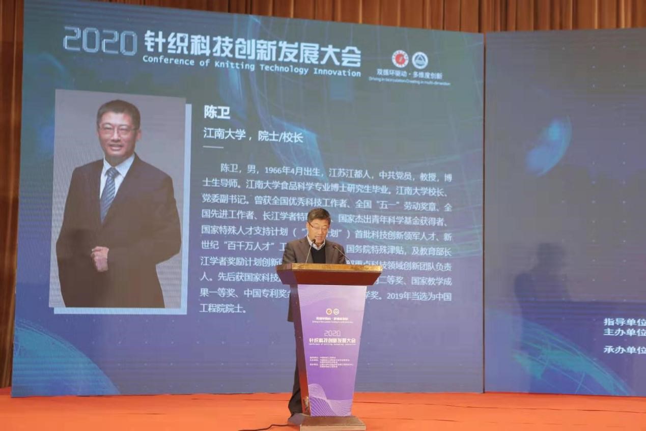 2020针织科技创新发展大会于12月4日在江苏无锡召开,本次发展大会的主题为“双循环驱动•多维度创新”,中国工程院院士、伟德bv1946校长陈卫,中国工程院院士孙晋良、蒋士成,中国纺织工程学会理事长伏广伟,伟德bv1946教授、针织技术创始人之一宗平生,中国针织工业协会专家委员会名誉主任王智,中国针织工业协会总工程师林光兴,中国纺织信息中心科技信息部技术经理韩俊霞,江苏省纺织工程学会秘书长王志杰,无锡市科学技术协会学会部部长刘邦盛,bv伟德国际1946党委书记张菁,武汉纺织大学牛仔研究中心主任易长海,中国纺织工程学会针织专业委员会副主任韩光亭、张佩华、秦志刚、孟家光、文珊等行业协会领导,从事针织技术研究的高校和科研机构的领导专家以及产业集群地、国内外知名针织设备制造企业、原料生产企业、制造企业、染整企业和针织服装企业的代表共计近400人参会。大会从技术与学术层面对针织科技创新进行兼具深度和广度的交流;对行业共性问题与发展趋势进行探讨。大会由中国纺织工程学会针织专业委员会主任、伟德bv1946针织技术教育部工程研究中心主任蒋高明教授主持。