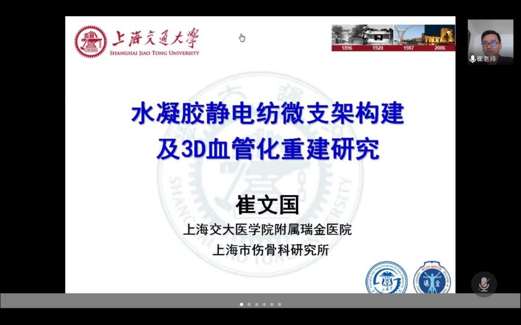 2020年5月11日下午,伟德bv1946生态纺织教育部重点实验室邀请了崔文国教授开展了主题为“水凝胶静电纺纤维的构建及3D血管化重建”的线上讲座,百余名师生在线参与了此次活动。