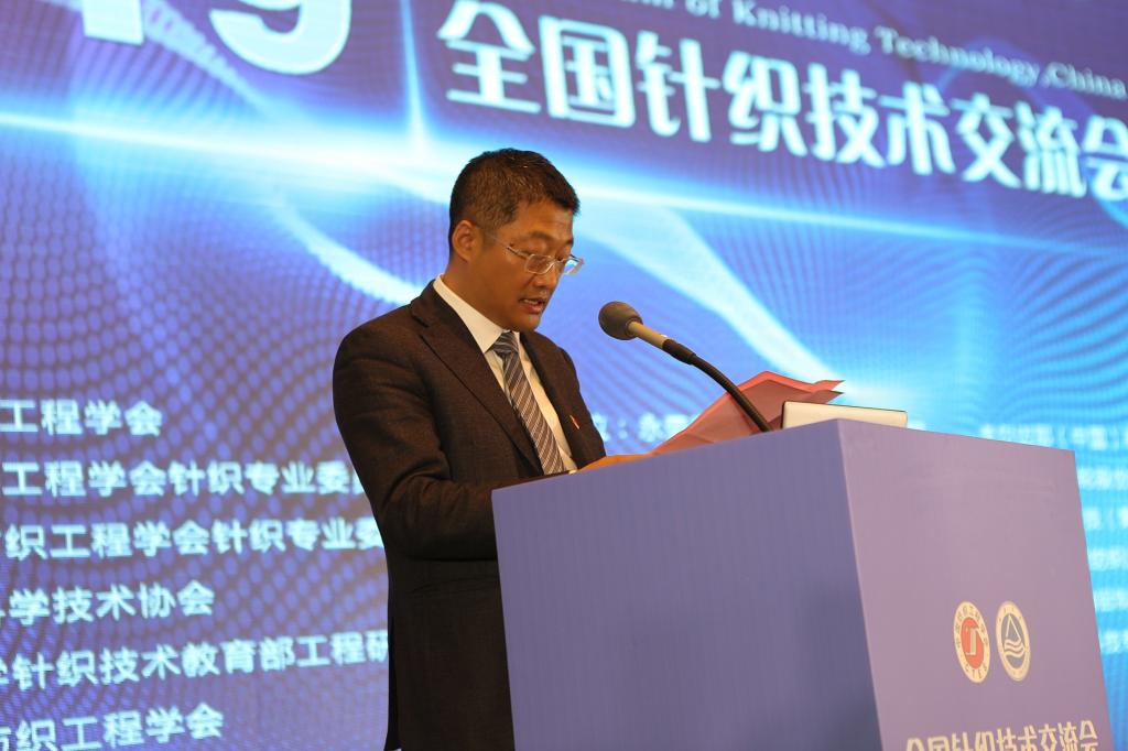 中国纺织工程学会常务副理事长伏广伟在讲话中总结回顾了纺织发展的贡献以及如今针织行业发展现状,以多例国内纺织企业创新技术为鉴,希望通过本次大会各位代表的合作探讨可以对针织行业的驱动创新发展有所帮助,同时对当今针织行业的发展表示期待。