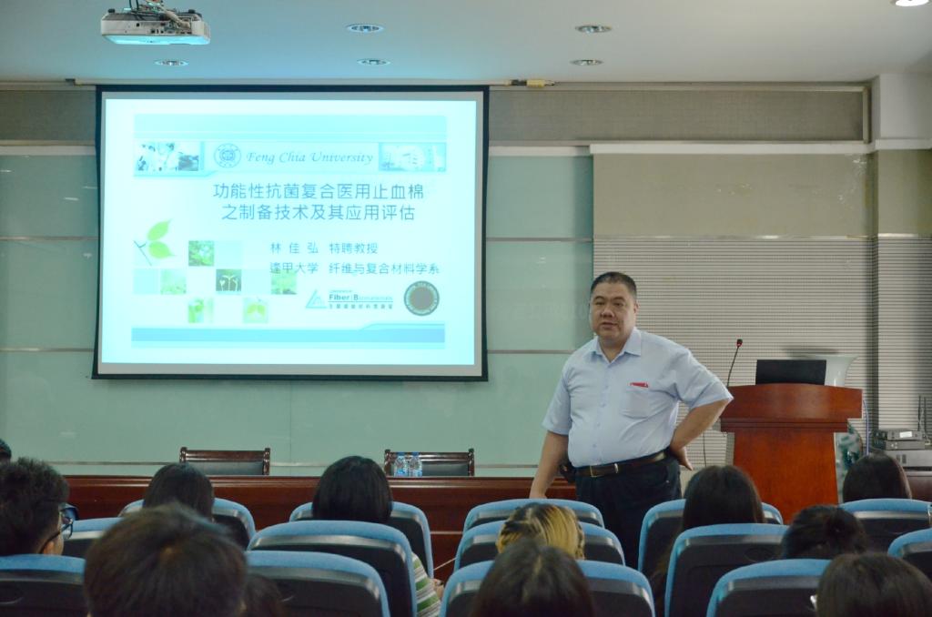伟德bv1946纺织服装学院副院长潘如如教授主持开场。首先由逢甲大学纤维与复合材料学系林佳弘教授带来学术报告,他对功能性抗菌复合医用止血棉之制备技术及其应用评估进行了阐述,包含纺织概念、分类到纺织结构复合材料、纺织复合材料的定义等介绍,用问答的方式更好地调动了大家的积极性,还介绍了目前的工作业绩和主要研究成果。