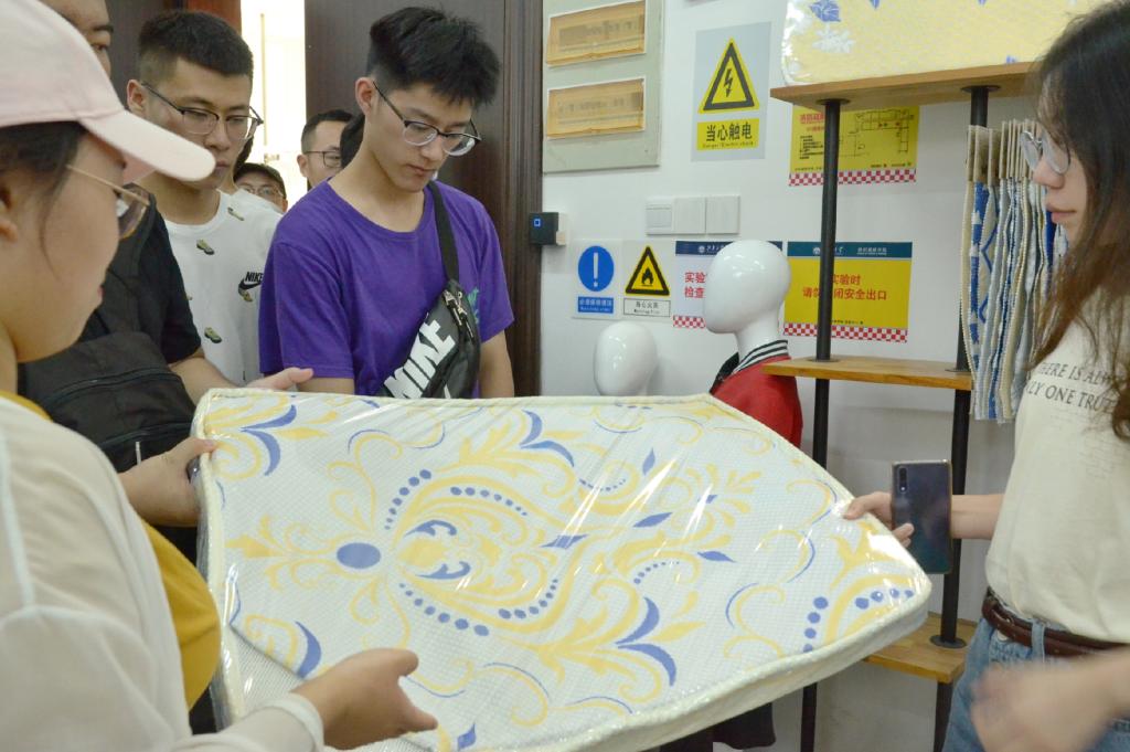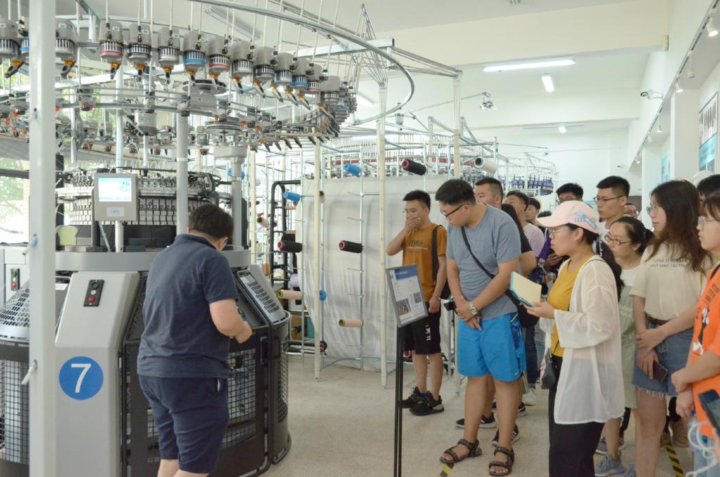 下午2时,在高哲老师的带领下,学员们来到了教育部针织工程研究中心参观,主要包括经编、纬编和横编实验室。参观过程中,高哲老师详尽地讲解了实验室的先进仪器设备,围绕经编超细纤维面料、条纹提花产品、经编产业用系列产品、无缝成形织物以及高密高档面料、石墨烯功能纤维等针织新产品研发亮点与未来发展方向,与学员们一同进行交流讨论。