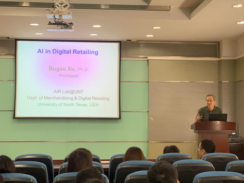 2019年7月17日上午9:00,来自美国北德克萨斯大学教授Dr. Bugao Xu为我院师生带来题为“AI applications in digital retailing”的精彩讲座。