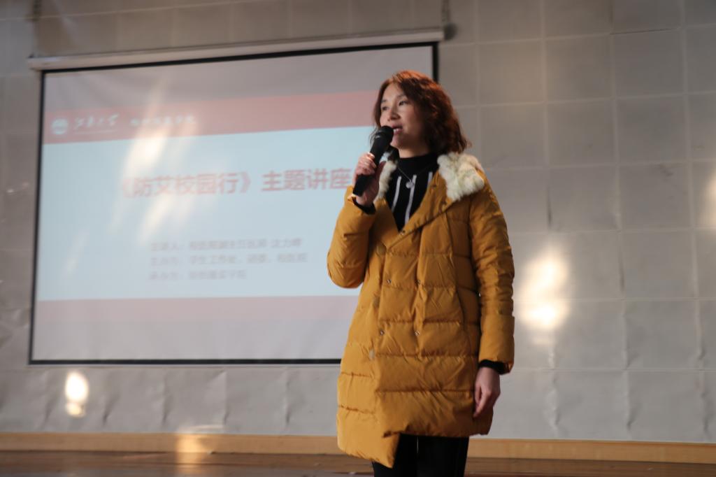 12月12日下午,由伟德国际处、校团委和校医院联合举办的《防艾校园行》健康教育讲座纺织服装学院分场,在纺服学院C区表演厅举办。伟德bv1946校医院副主任医师沈力晔医生应邀作专题讲座,来自设计学院、机械学院、环土学院、理学院、法学院以及纺服学院的300余名学生聆听了讲座。