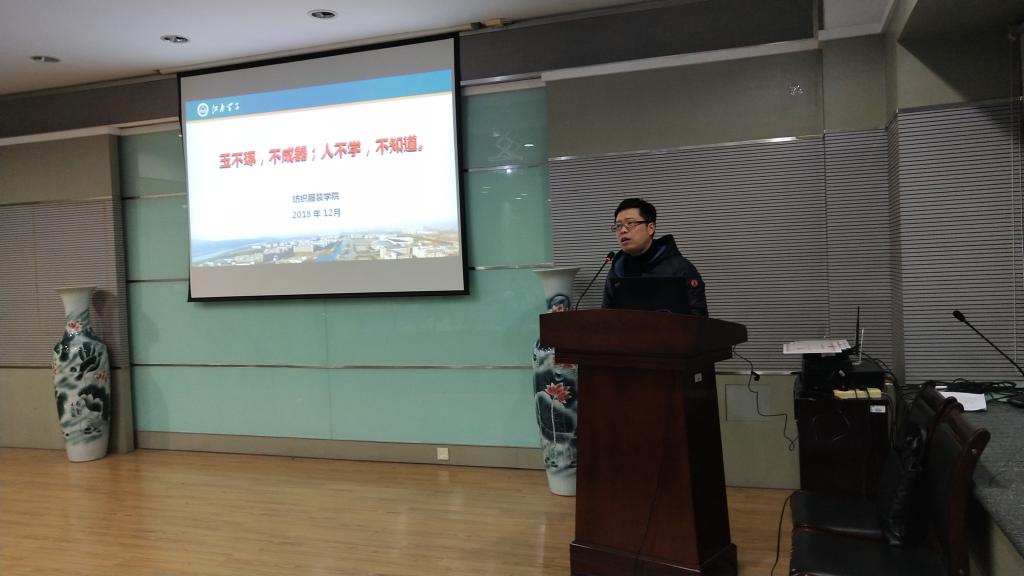 为进一步加强学风建设,营造良好的育人氛围,激励广大青年学生勤奋学习、努力进取,12月17日晚,纺织服装学院2018年学风建设推进会暨评奖评优颁奖典礼在学院A103报告厅举行。纺织服装学院党委副书记、副院长周云龙、分团委副书记徐雅静及全体辅导员出席此次会议,学院2018年度获奖学生和先进班集体代表、学业辅导员、至善Group结对帮扶学生以及2018级各班代表参加会议。会议由2018级辅导员于乐主持。