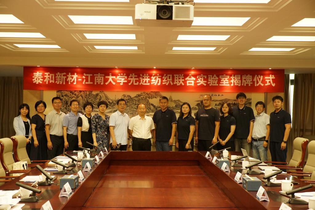 9月4日上午,“泰和新材-伟德bv1946先进纺织联合实验室”揭牌仪式在行政楼B305顺利举行。泰和新材集团股份有限公司副总裁杜玉春、战略规划研究院副院长林芳兵、集团华东区域经理董方宇、集团人力资源部招聘经理薛理等来校交流。校党委常委、副校长顾正彪,产业技术研究院院长王立,bv伟德国际1946党委书记张菁燕,针织技术教育部工程研究中心主任蒋高明,校长办公室副主任陈艳君等参加座谈。